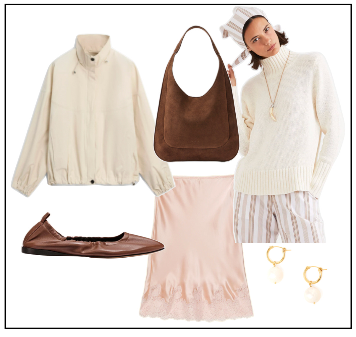 The jacket of the season, at least for me, is the bomber jacket. Naturally, they work great with pants, but the silhouette I’m dying to wear this spring is a knee-length, low-slung skirt with a bomber jacket and heels. Taking inspiration from the fall ‘26 Prada show, I wanted multiple layers to arrive at a more complex yet wearable whole.
